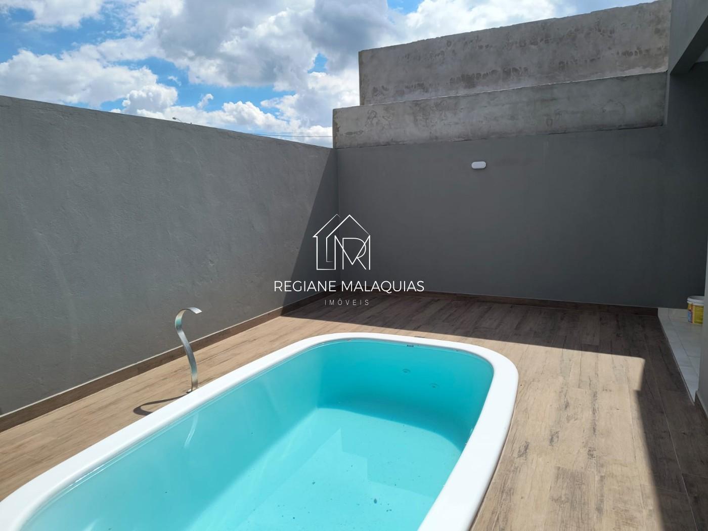 Sala e cozinha com pé direito alto toda em porcelanato, 2 dormitórios (sendo 1 suíte), banheiro social, espaço gourmet com pia e lavanderia, corredor lateral, lavabo, piscina (com hidro, led, e com ligação para aquecimento).