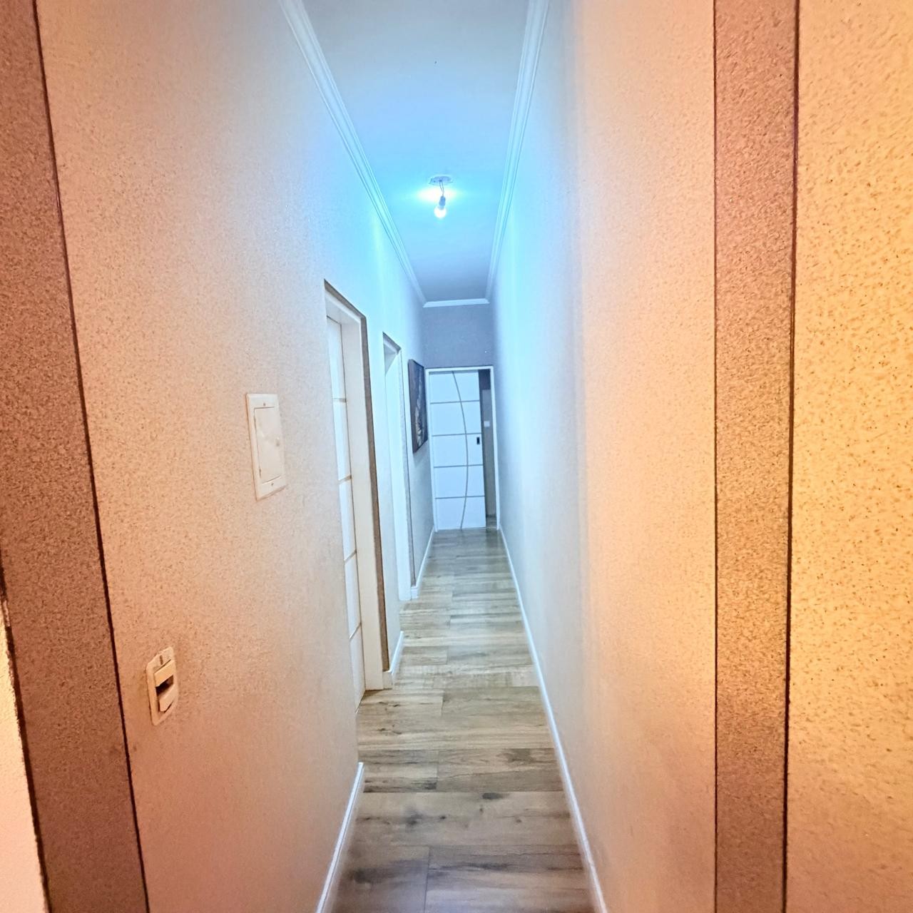 2 quartos (sendo 1 suíte), sala, cozinha, escritório e 2 vagas de garagem coberta.
